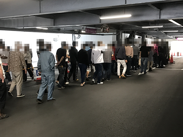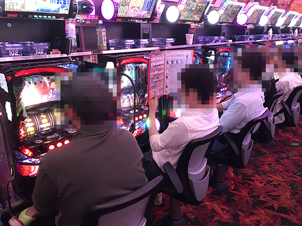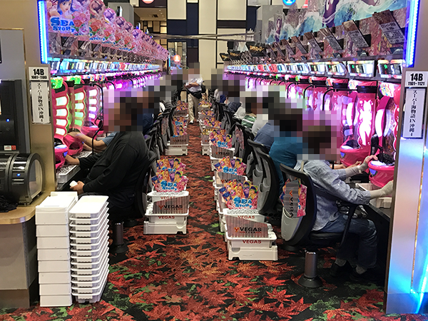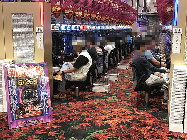 開店前に集まっていたプレイヤーの数は600名前後。遊技を心待ちにしているような姿も多く、華やかなムードが伝わってきた。