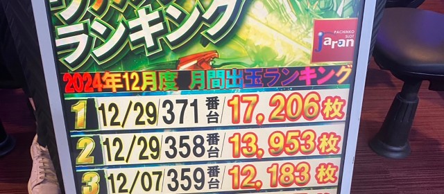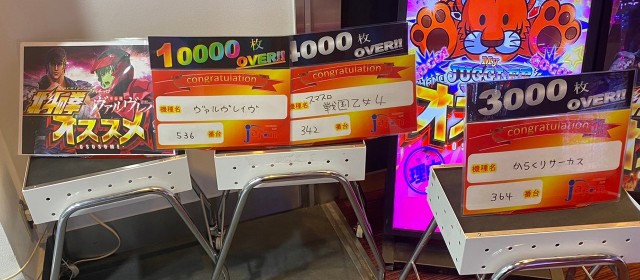 この調査の目的は「週のラストを飾る土日営業のリアル」をお伝えすることにある。上写真の様に2024年末はメインと思しきマシンに好記録が連発したようで、この日も匹敵するビッグヒットが飛び出したようだ。