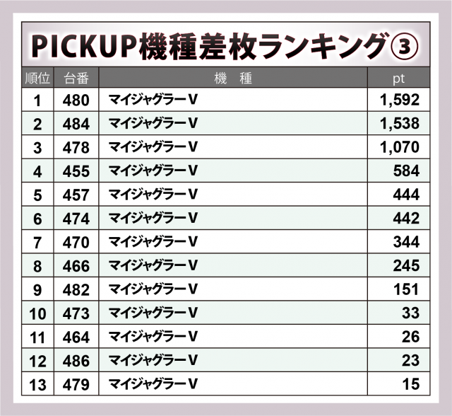 さらに『スマスロ北斗の拳』では+2,900枚超、『マイジャグラーⅤ』では4桁プラスが3台と、人気の高いメジャー機種に好況が窺えた。