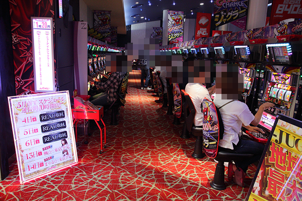 20円パチスロでとくに盛り上がっていたのは、「バジリスク~甲賀忍法帖~絆」。なかには笑みを浮かべるといった姿があり、充実した遊技をできているようであった。