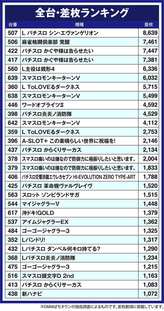 ※なお、本記事中のデータは全てDMMぱちタウンの独自調査によるものです