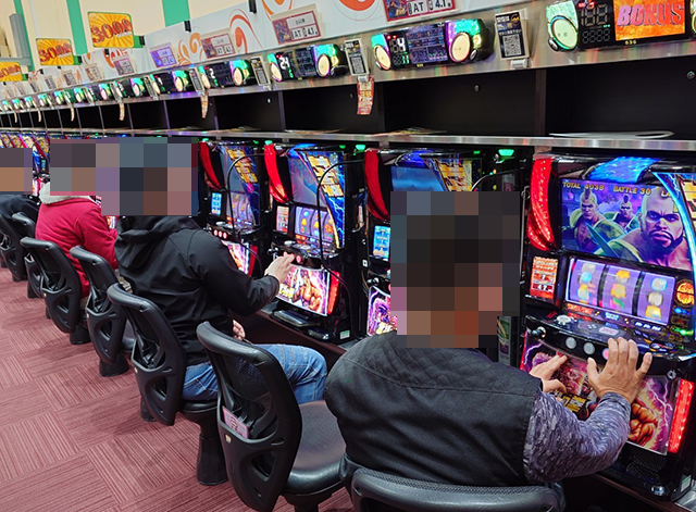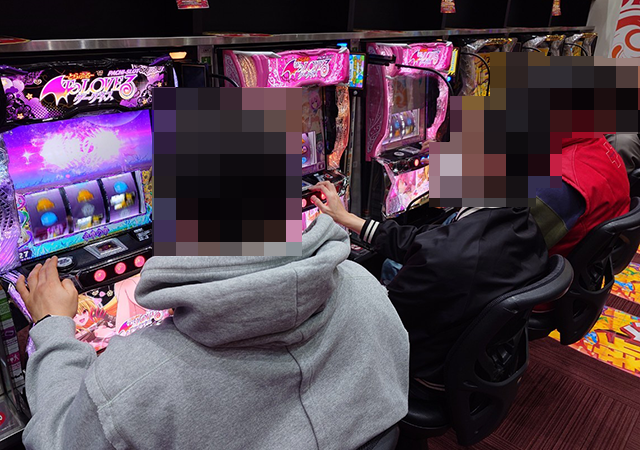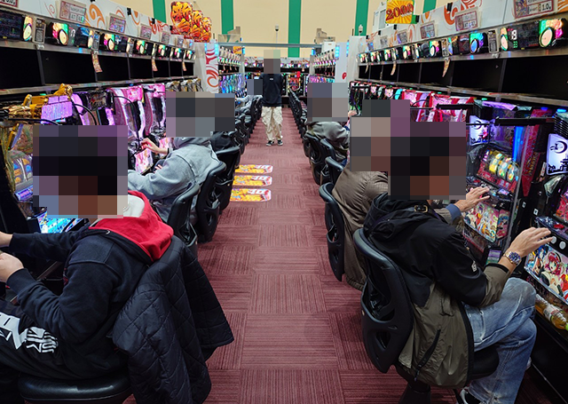たくさんのプレイヤーが笑顔で遊技をおこなっており、多くの台が約+2,000ptオーバー。