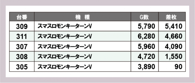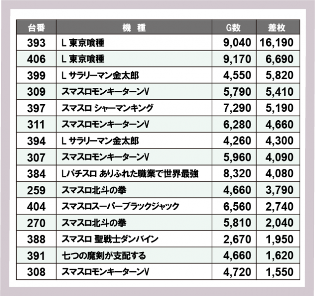※差枚数順に掲載しています