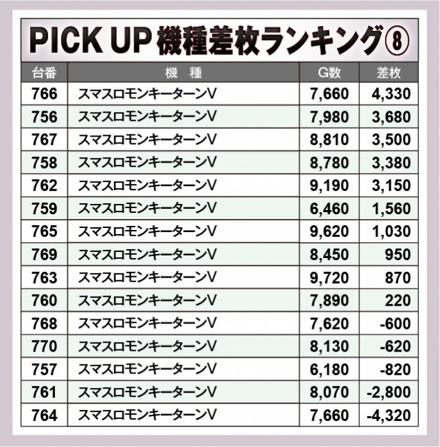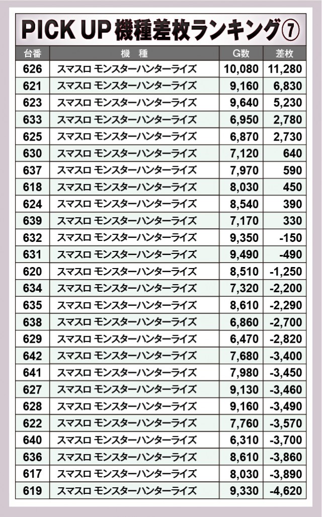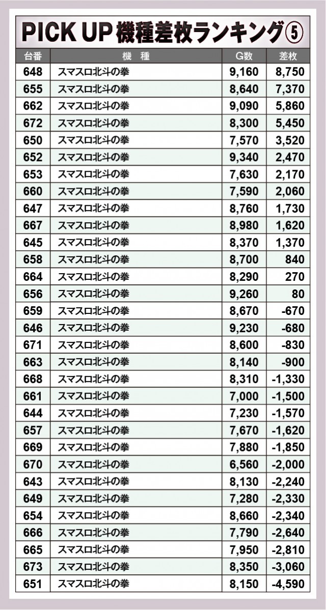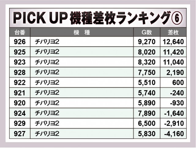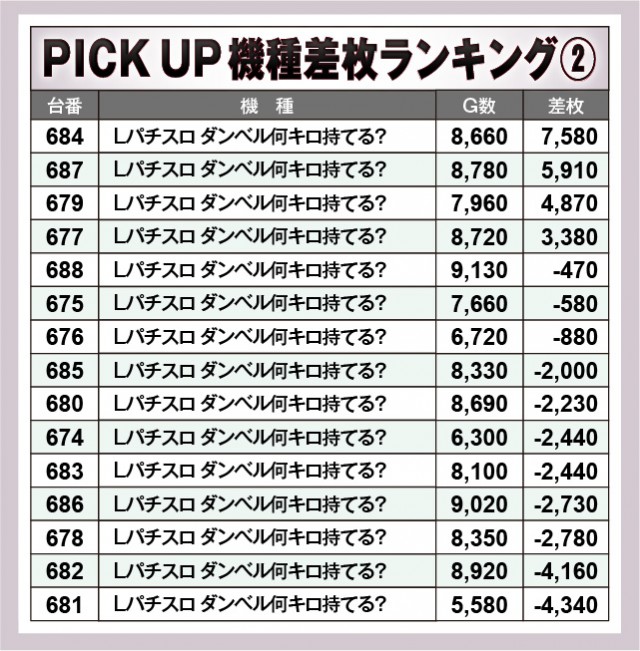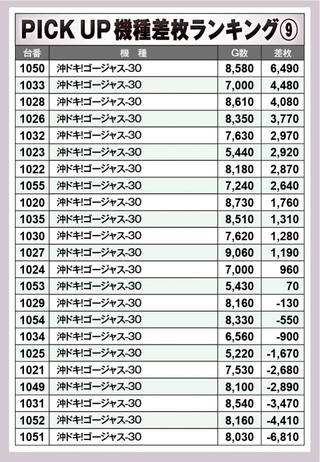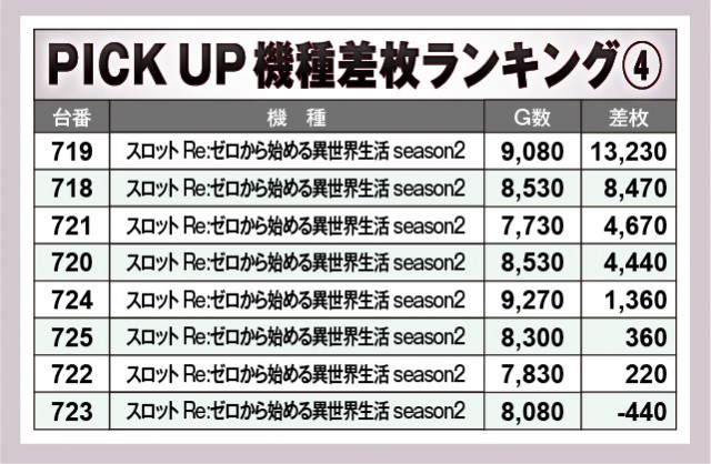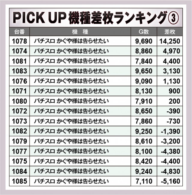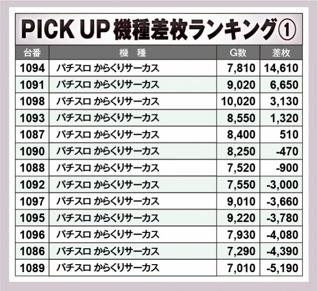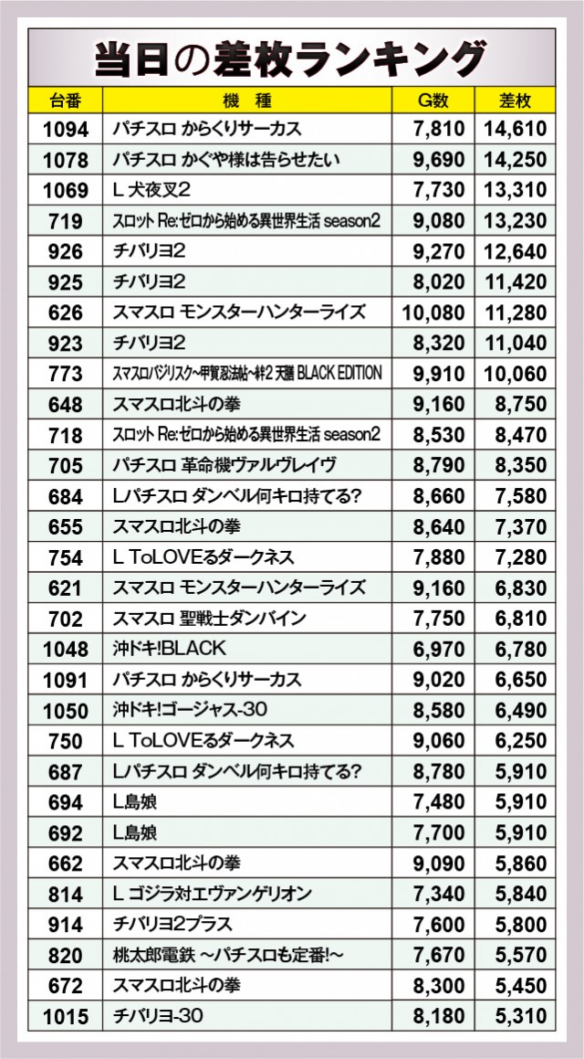 ※差枚数順に掲載しています。