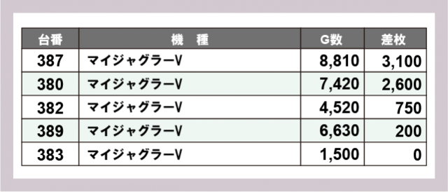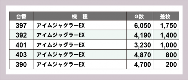 ※差枚数順に掲載しています