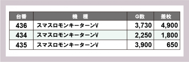 ※差枚数順に掲載しています