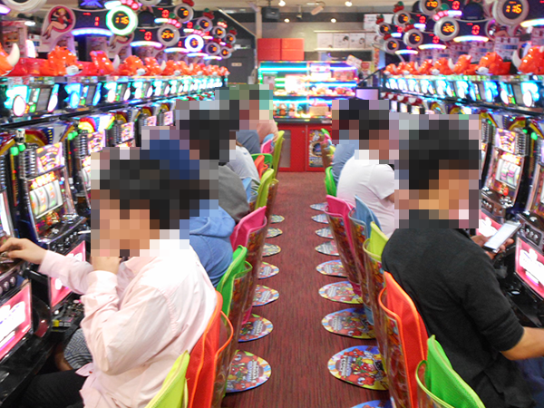 午後のホール内をみてみると、ジャグラーシリーズが活況。機種の性能をうまく引き出せているような姿も多く、シマ全体が華やかなムードに包まれていた。