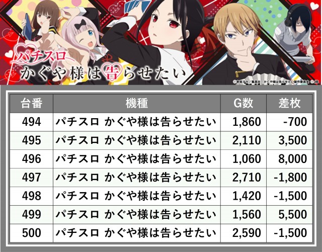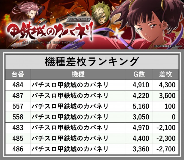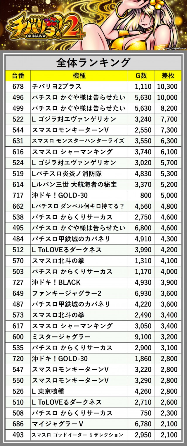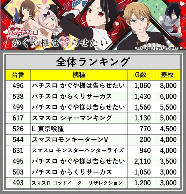 ※差枚数順に掲載しています