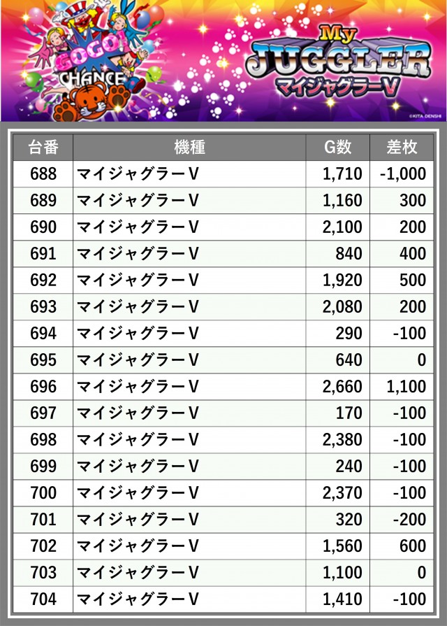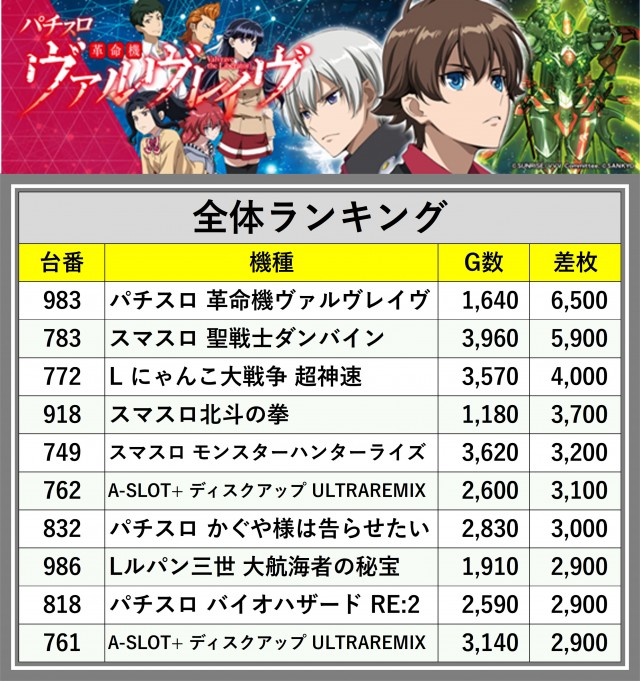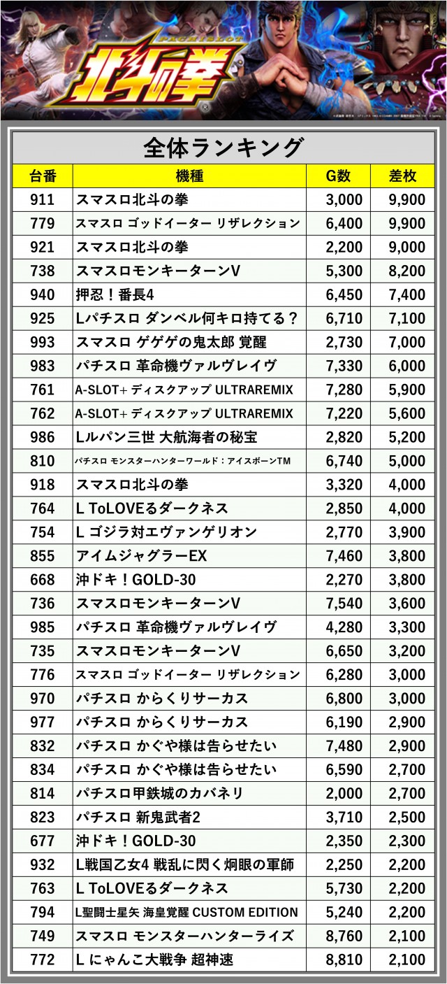 厳選された取材対象機種をはじめ、その他スロット全体から好記録が飛び出した!プレイヤーが楽しんだ1日を下記データにて振り返ってみて欲しい。