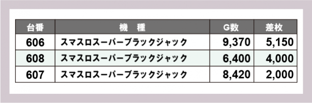 ※差枚数順に掲載しています