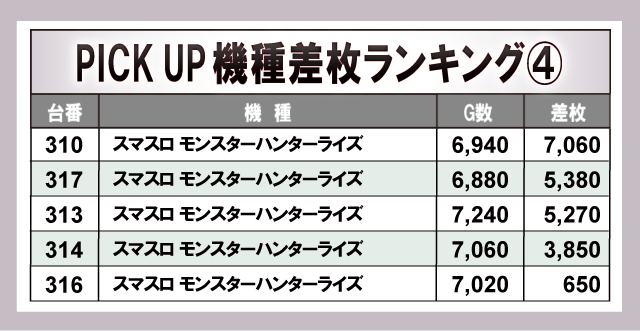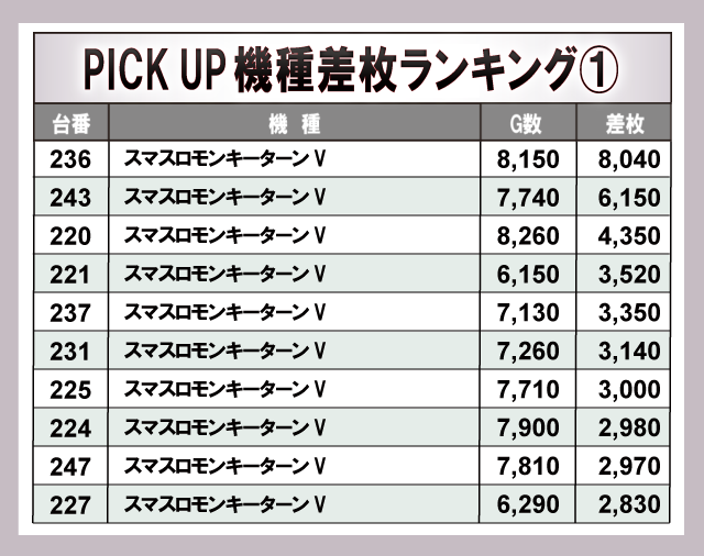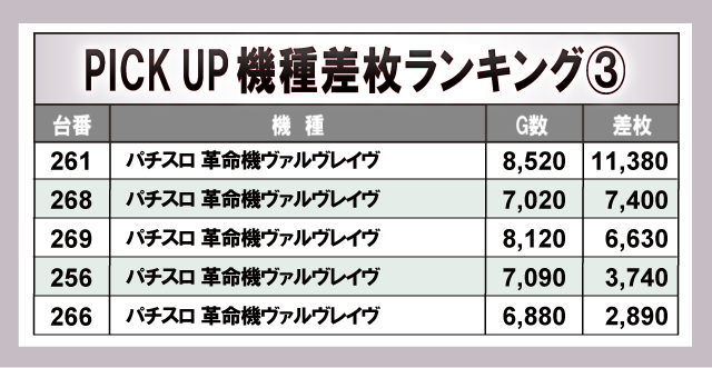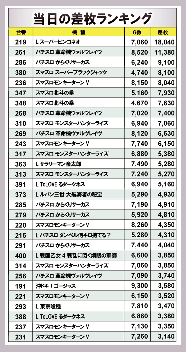 ※差枚数順に掲載しています。