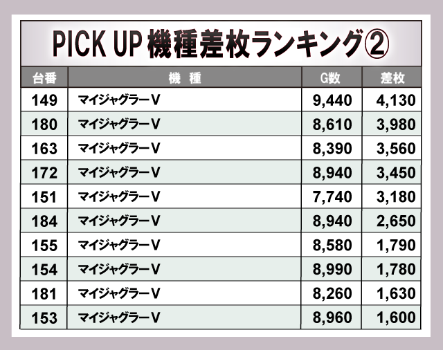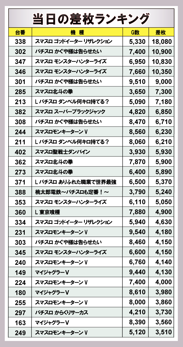 ※差枚数順に掲載しています。