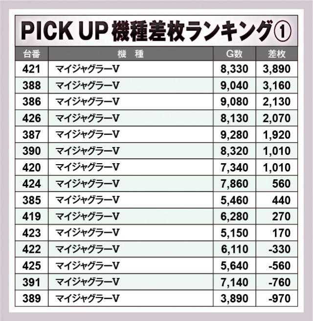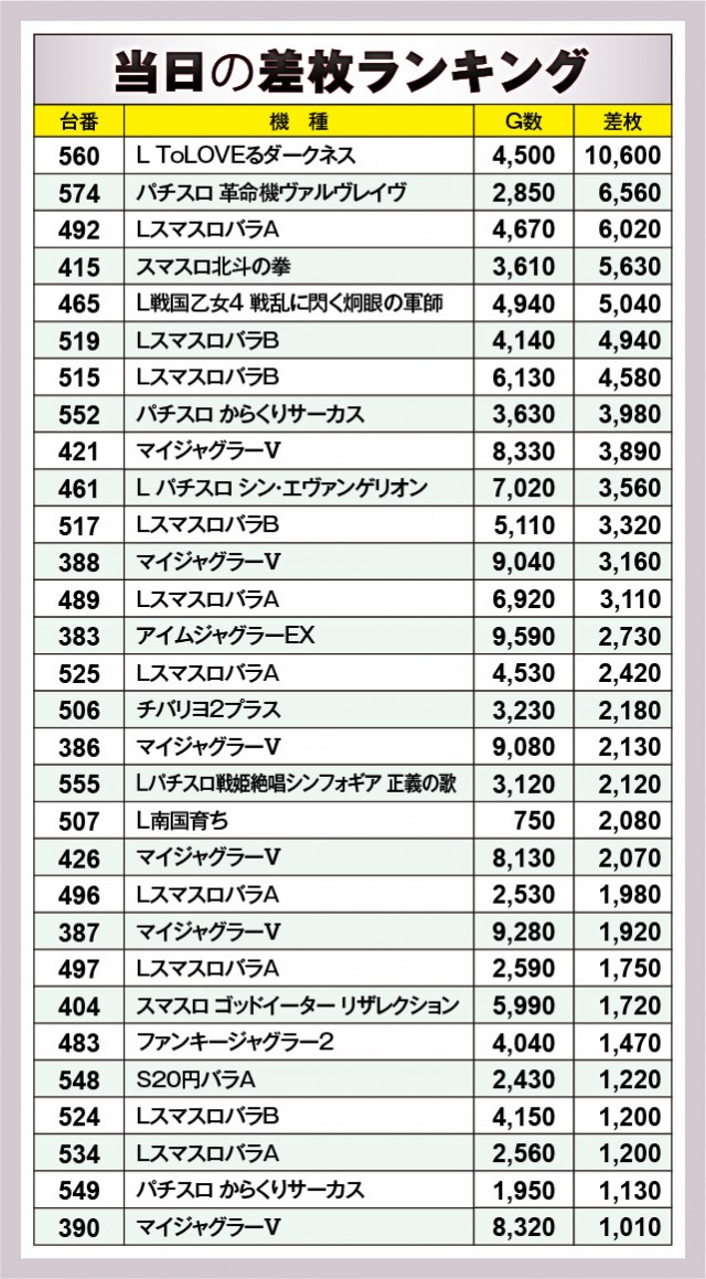 ※差枚数順に掲載しています。