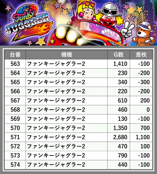 厳選された取材対象機種をはじめ、その他スロット全体から好記録が飛び出した!プレイヤーが楽しんだ1日を下記データにて振り返ってみて欲しい。