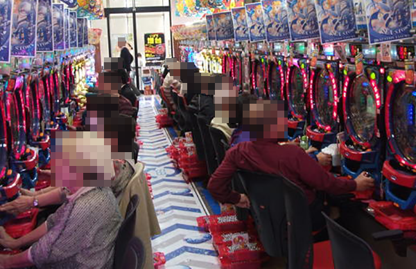1円パチンココーナーはシニア層に人気。こちらも「海物語シリーズ」が人気となっており、心の底から楽しめているといったプレイヤーの姿も多数見ることができた。
