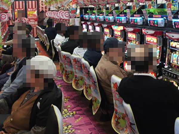 開店前には設置されている休憩コーナーにて、お茶を飲みつつ談笑しているプレイヤーを発見。遊技を楽しみにしていることと、ホールが地域に愛されていることが伝わってきた。