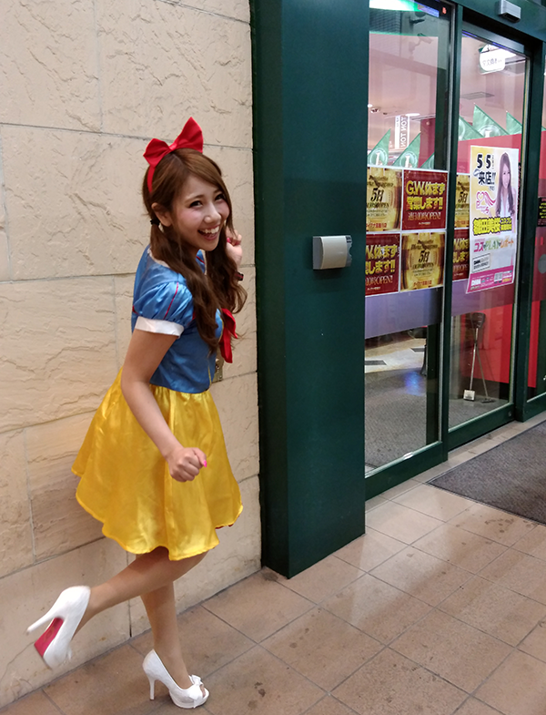 白雪姫風のコスチュームを身にまとい、店内へGo!!