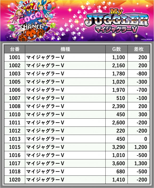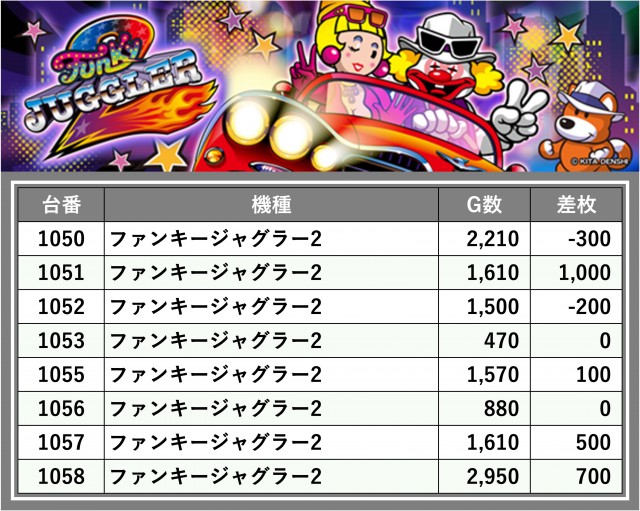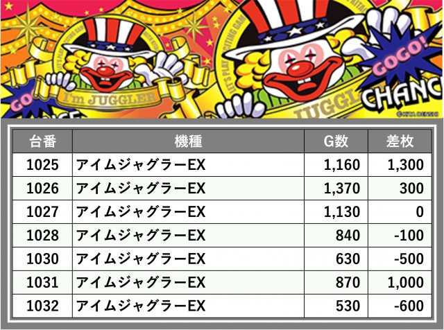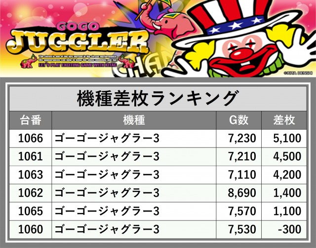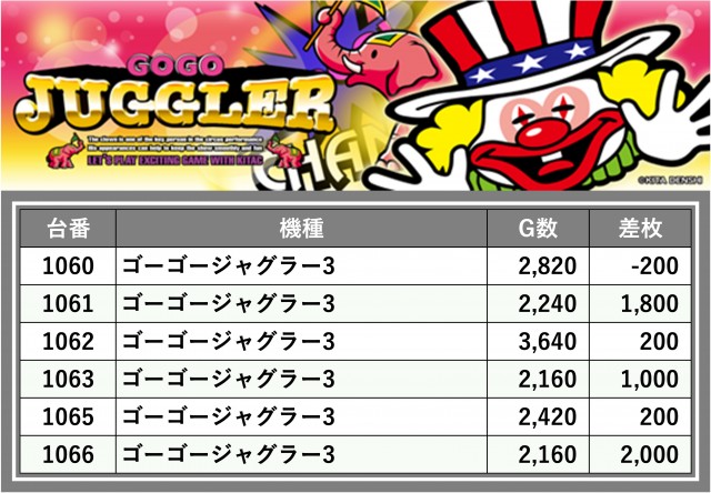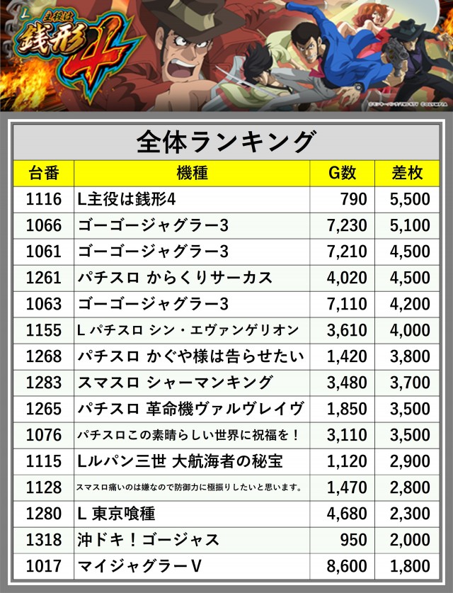 厳選された取材対象機種をはじめ、その他スロット全体から好記録が飛び出した!プレイヤーが楽しんだ1日を下記データにて振り返ってみて欲しい。