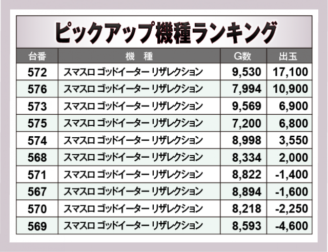 ※出玉数順に掲載しています