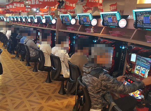 定番機種であるジャグラーシリーズの稼働率も高く、笑顔で遊技をはじめるプレイヤーの姿が印象的であった。