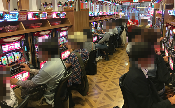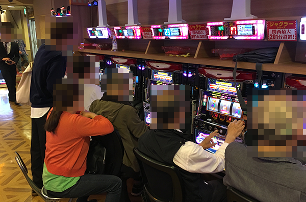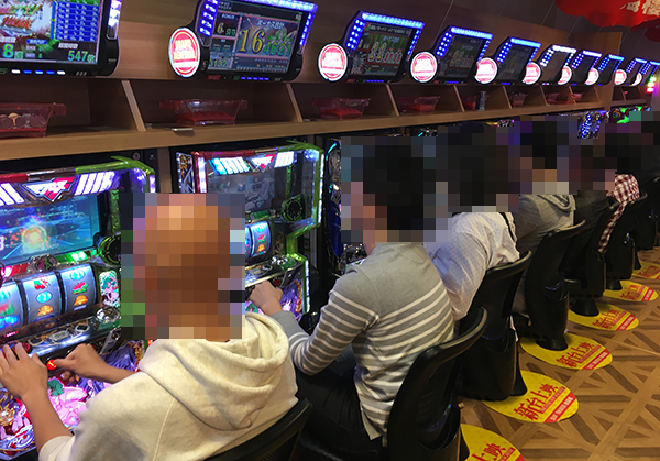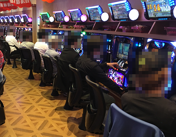 開店直後のホール内においては、「バジリスク~甲賀忍法帖~絆」やジャグラーシリーズなど、満席となる機種が多数。