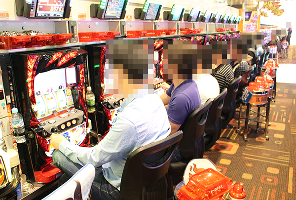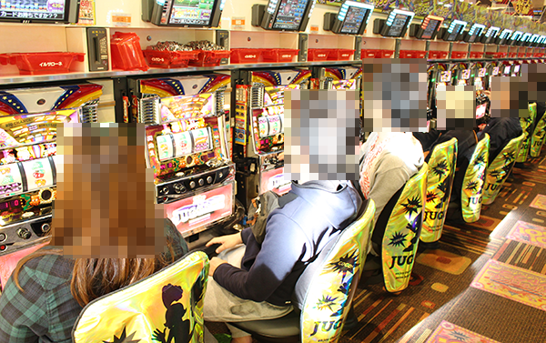 1000円/188枚パチスロの支持も厚く、空き台は少ない。