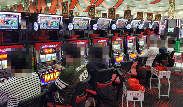 午後の20円パチスロにおいて、とくに目立っていたのが「バジリスク~甲賀忍法帖~絆」。ポテンシャルを最大限まで発揮できているようなプレイヤーが多く、華やかな雰囲気が感じられた。