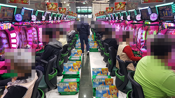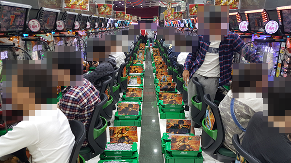 「ミリオンゴッド-神々の凱旋-」と「アナザーゴッドハーデス」、新台の「押忍!番長3」も活況で、魅力的な光景が広がっていた。