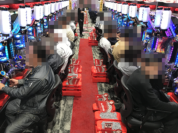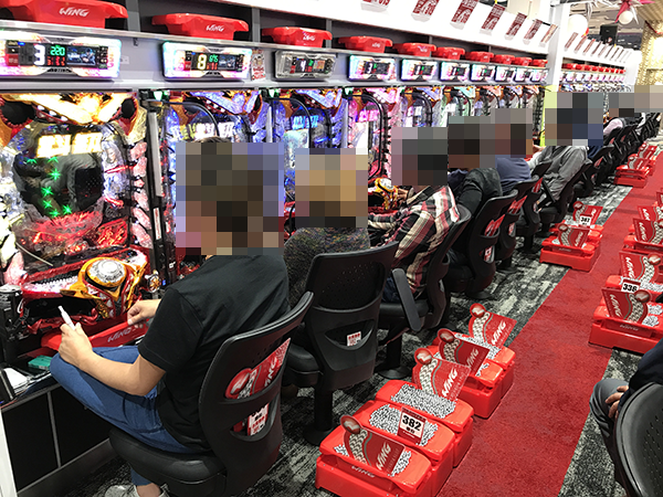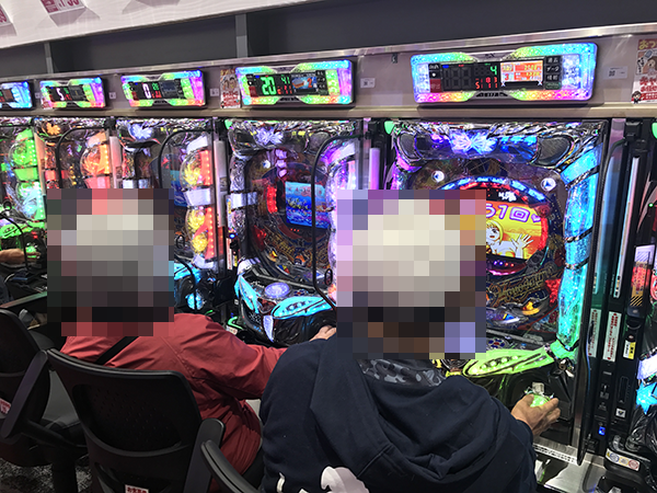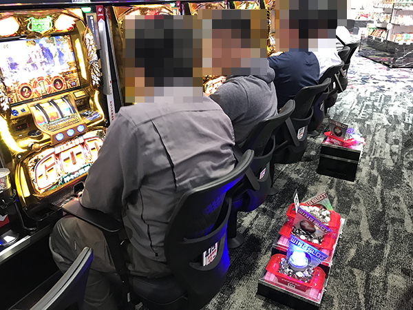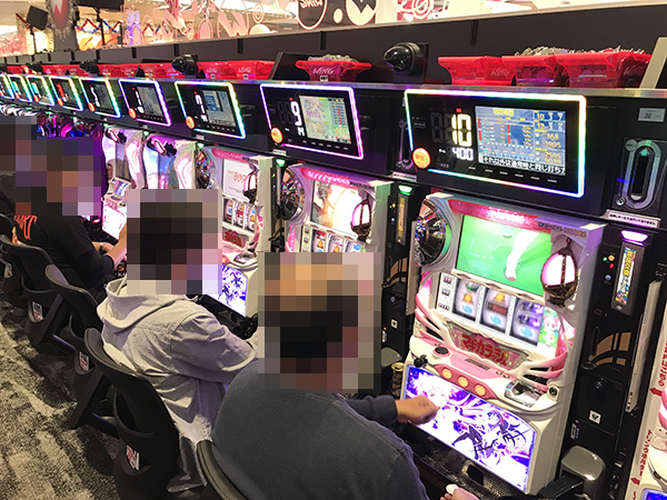 15時ごろのパチスロでは、「ミリオンゴッド-神々の凱旋-」や「アナザーゴッドハーデス」、「沖ドキ!」が大盛況。プレイヤーたちの笑顔が満足度の高さをあらわしているように思えた。
