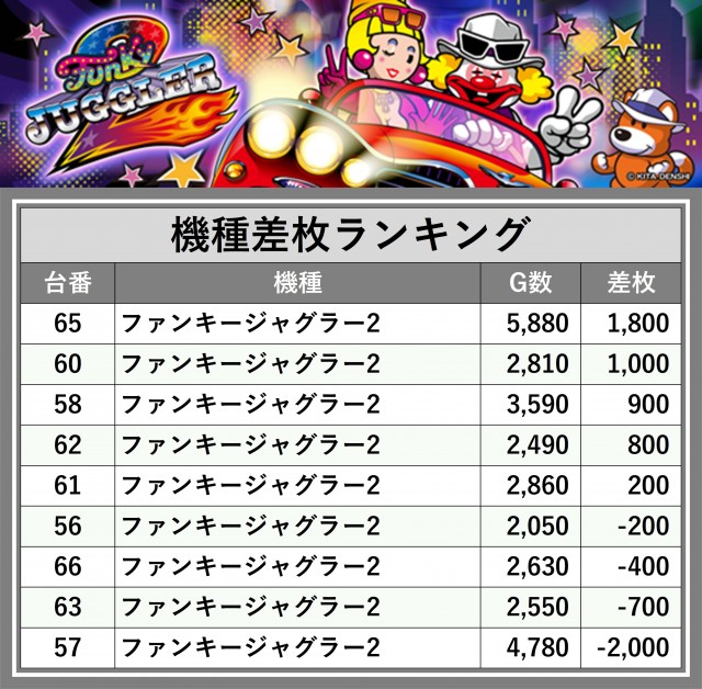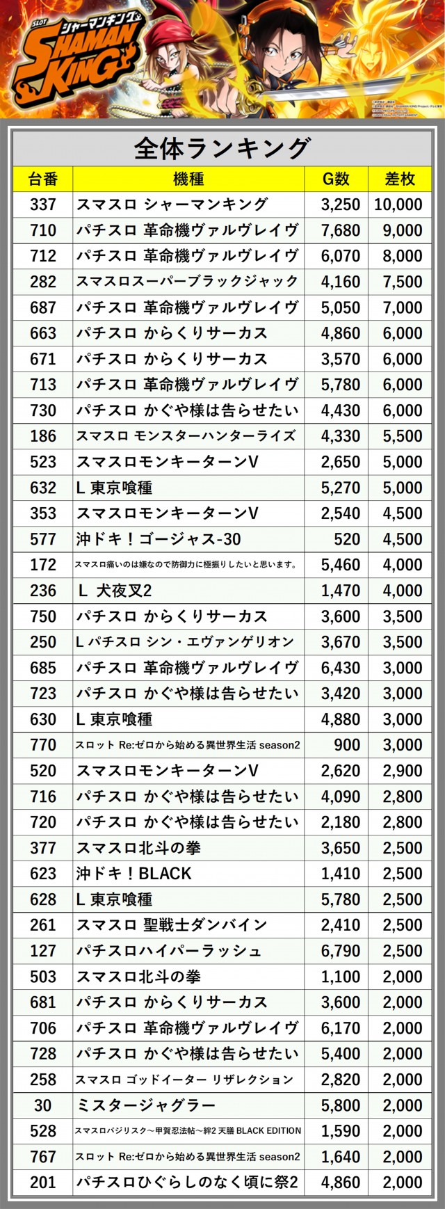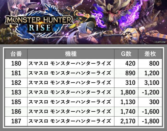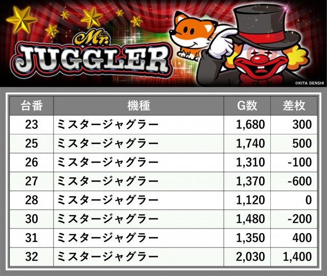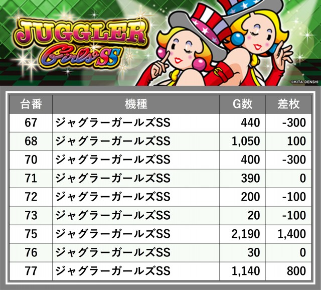 厳選された取材対象機種をはじめ、その他スロット全体から好記録が飛び出した!プレイヤーが楽しんだ1日を下記データにて振り返ってみて欲しい。