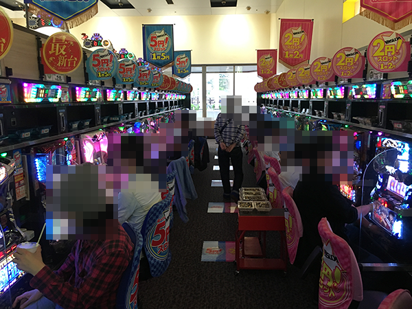 16時頃の4円パチンコをみると、「ぱちんこCR北斗の拳7 転生」が大好評。あちこちに機種の醍醐味を堪能しているような姿もあり、鮮やかな光景が広がっていた。