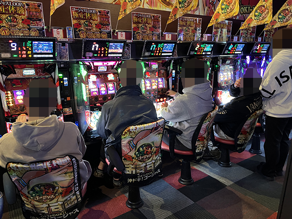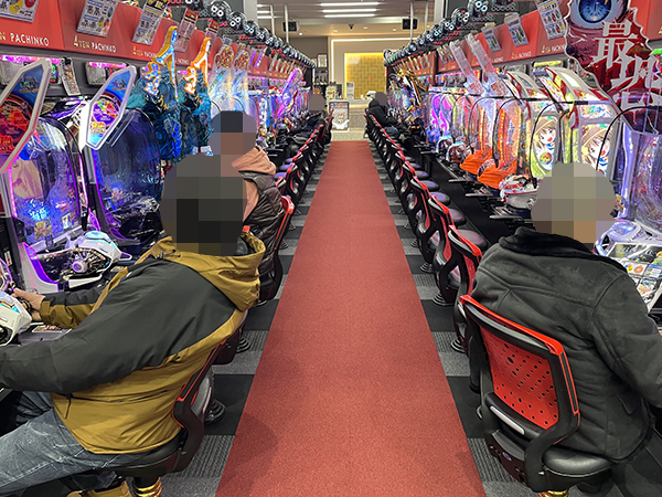 店内では貸し玉料金を問わず様々な機種で、心ゆくまで楽しむプレイヤーの姿が見られた。