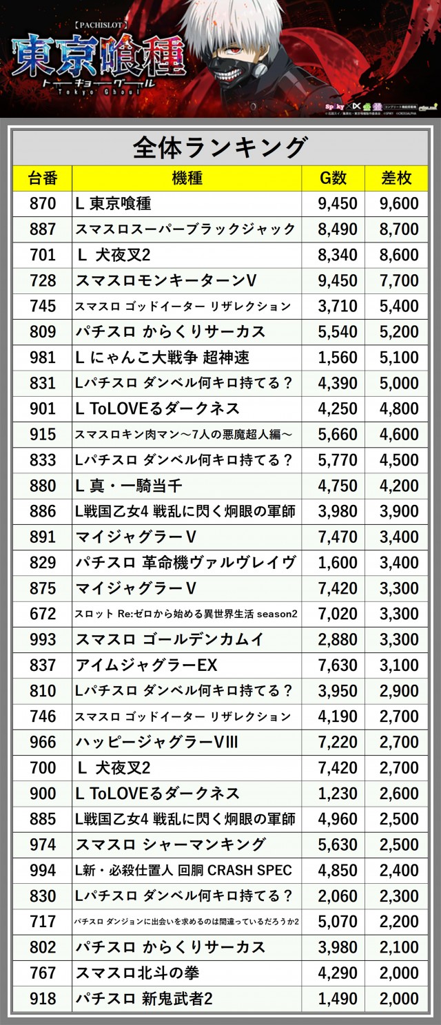 厳選された取材対象機種をはじめ、その他スロット全体から好記録が飛び出した!プレイヤーが楽しんだ1日を下記データにて振り返ってみて欲しい。