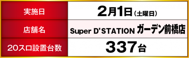 SuperD'STATIONガーデン前橋店 差枚ランキング(2月1日)