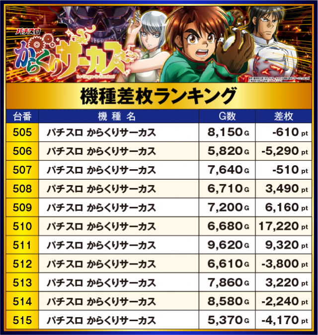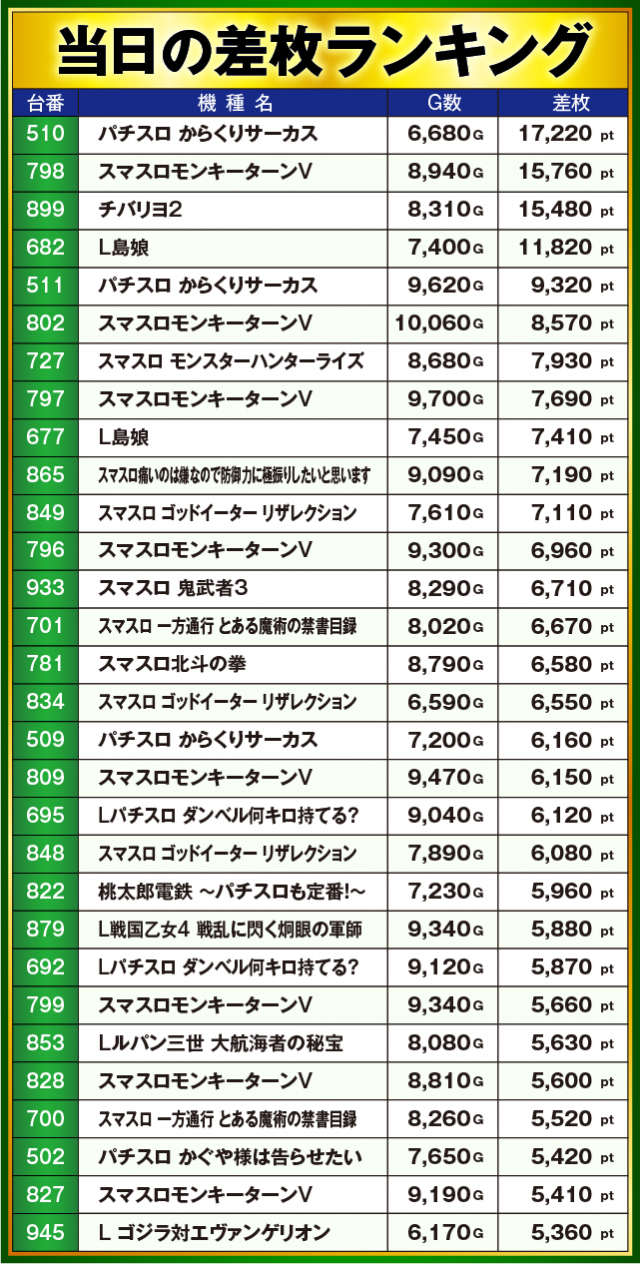 レポートの最後に「Super D’STATION高崎本店」の差枚ランキングも掲載!