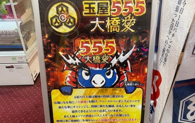 2月14日、『玉屋555大橋店』にて「たまピー来店取材」が実施された。『玉屋409雑餉隈』『玉屋666唐津』とともに3日間の3店舗合同開催ということで、ファンは期待を胸に開店時間となるその瞬間を待ちわびていたのが印象に残る。同店もまたファンを笑顔にしようと気概に満ちており、盛り上がる予感を抑えきれなかった。果たして初日はどのような展開を繰り広げられたのか…さっそく以下から、出玉詳細データとともに当日の様子をお伝えしていくぞ!