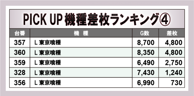 『スマスロモンキーターンV』『パチスロ かぐや様は告らせたい』『スマスロ モンスターハンターライズ』『パチスロ からくりサーカス』といった、今やスマスロ機の中心となる人気機種たちが目立った活躍を披露。また、新台『L 東京喰種』もポテンシャルを解き放っており、導入されて間もないながらも大きな熱気を放っていた。いずれも高い回転数をマークし、大きな可能性を秘めていたのが手に取るように分かるだろう。