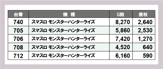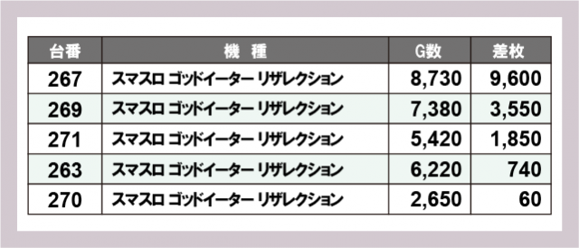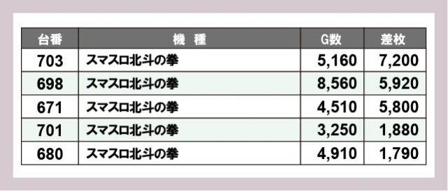 ※差枚数順に掲載しています