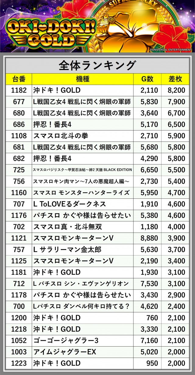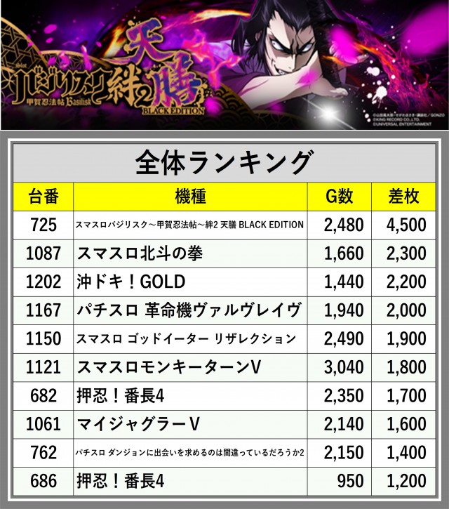 ※差枚数順に掲載しています
