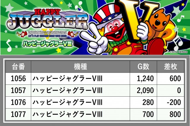 厳選された取材対象機種をはじめ、その他スロット全体から好記録が飛び出した!プレイヤーが楽しんだ1日を下記データにて振り返ってみて欲しい。