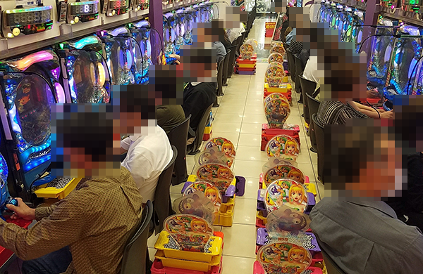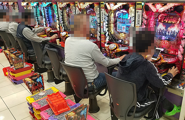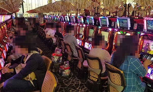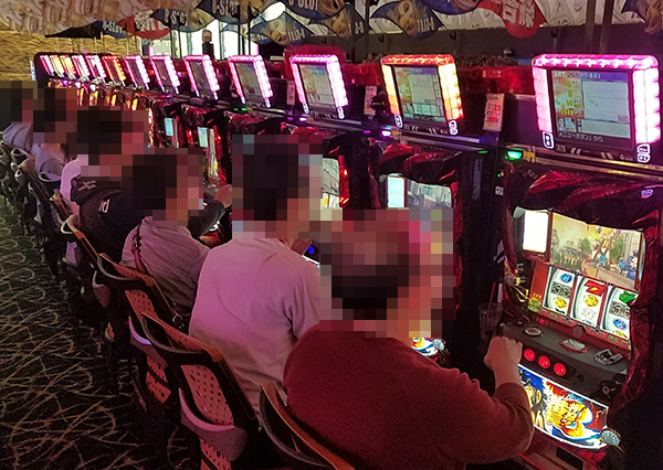 4円パチンコでは、海物語シリーズと「ぱちんこCR北斗の拳7 転生」が盛況。機種の性能を最大限まで引き出しているようなプレイヤーが多く、鮮やかな光景が広がっていた。