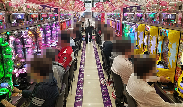 店内には大勢のプレイヤーが集まっており、パチンコとパチスロの各シマから活気が伝わってきた。