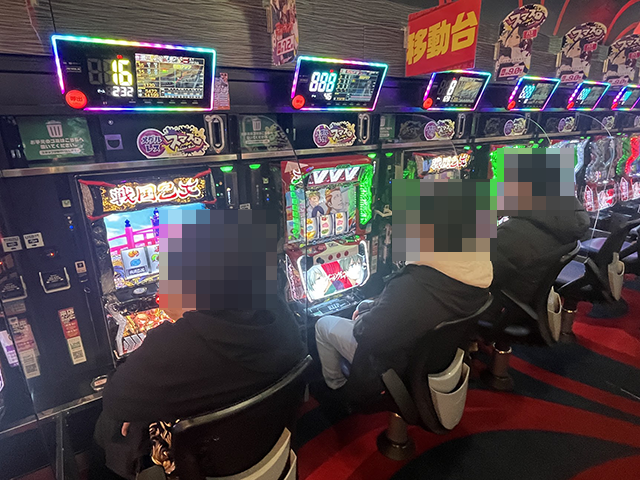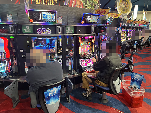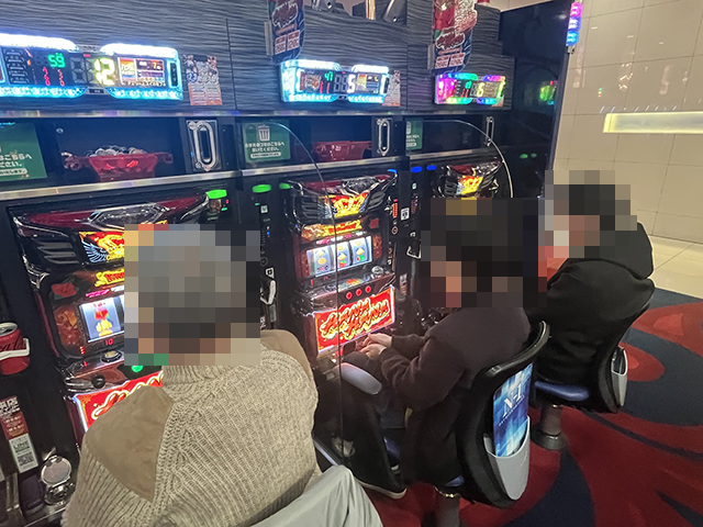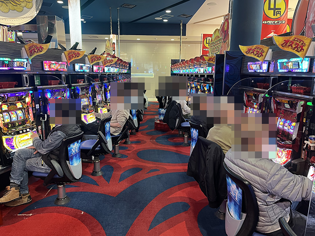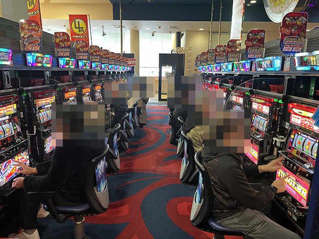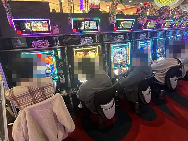 究極的に楽しんでいるプレイヤーを探すべく、パチスロコーナーをまわっていこう。
