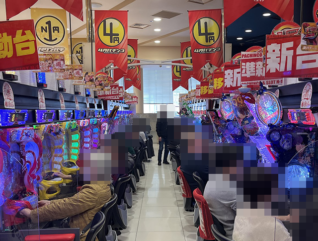プレイヤーたちは1箱以上の持ち玉を使って遊技中。