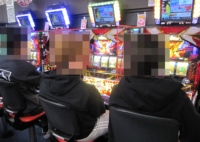 全員が持ち玉で遊技をおこなっており、2箱以上となっている台もアリ。