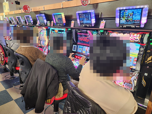 「ハナハナホウオウ~天翔~-30」においても、プレイヤーたちはボーナスを積み重ねながら、笑顔で遊技をおこなっていた。