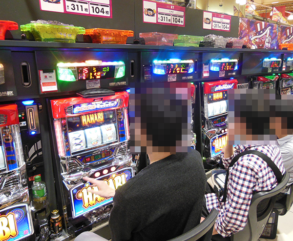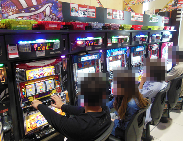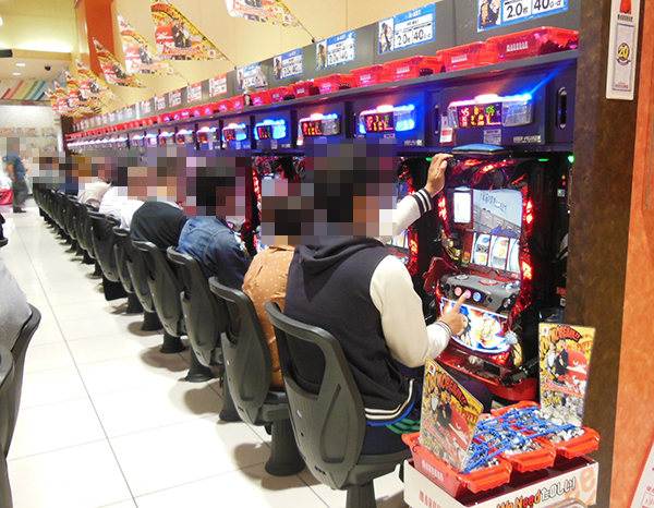 午後のパチスロをみると、「押忍!番長3」を中心に「沖ドキ!」や「バジリスク~甲賀忍法帖~絆」など、たくさんの場所がにぎわいをみせていた。
