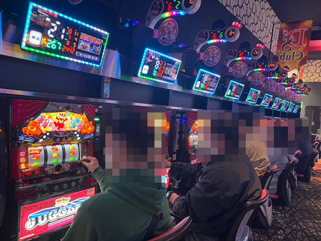 隣に置かれた「マイジャグラーⅤ」にも、明るい表情で遊技をおこなっている姿が多かった。