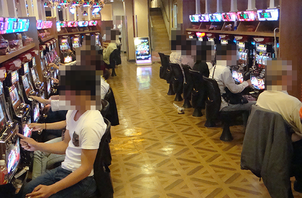 「バジリスク~甲賀忍法帖~絆」や「パチスロ モンキーターンⅡ」などもにぎわっており、シマ内に広がる雰囲気は明るい。