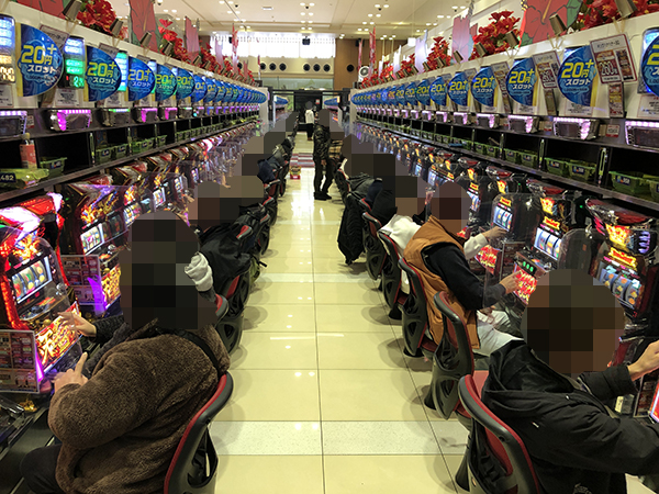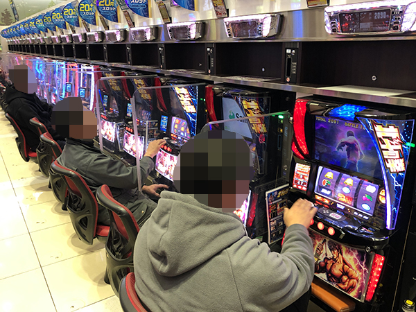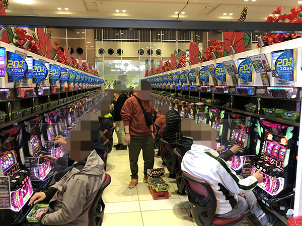 機種ラインナップが豊富な500円/89枚パチスロも活況で、実に華やかな光景が広がっていた。